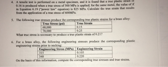 Solved A Tensile Test Is Performed On A Metal Specimen And Chegg Com